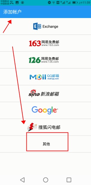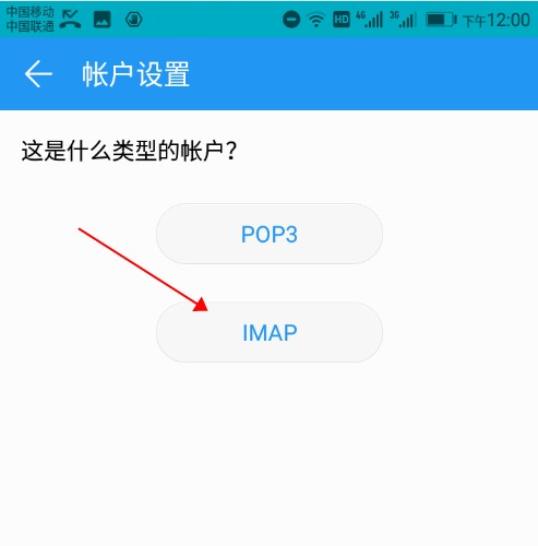 4、选择一种类型,两种都可以选择,POP3更简单,这里以IMAP为例,IMAP设置项会多一点点。
