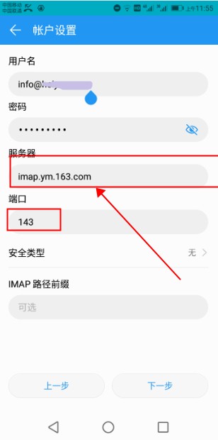 到下面这个界面,只要填写上IMAP的服务器号和端口号,端口号一般默认一样的。